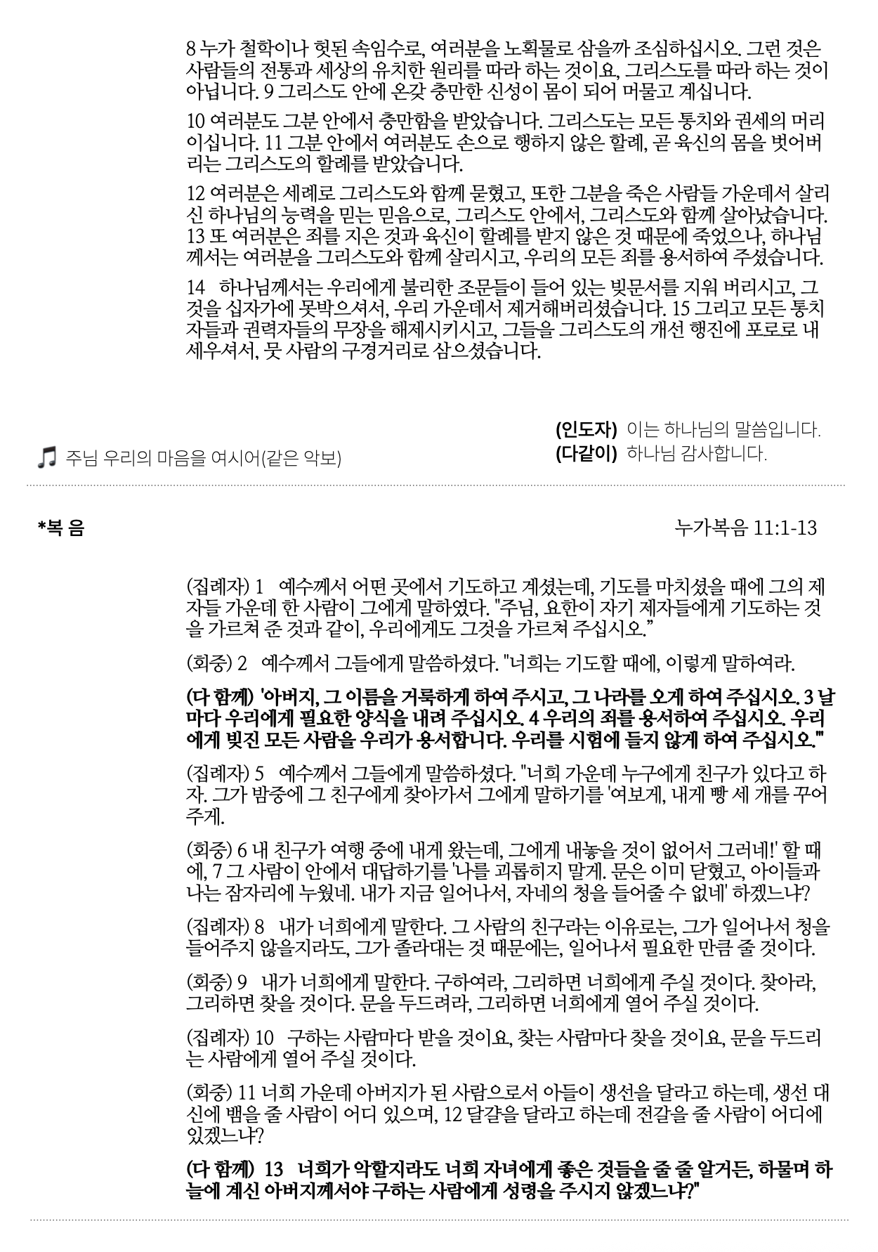 2025년 7월 27일, 성령강림 후 일곱째 주일