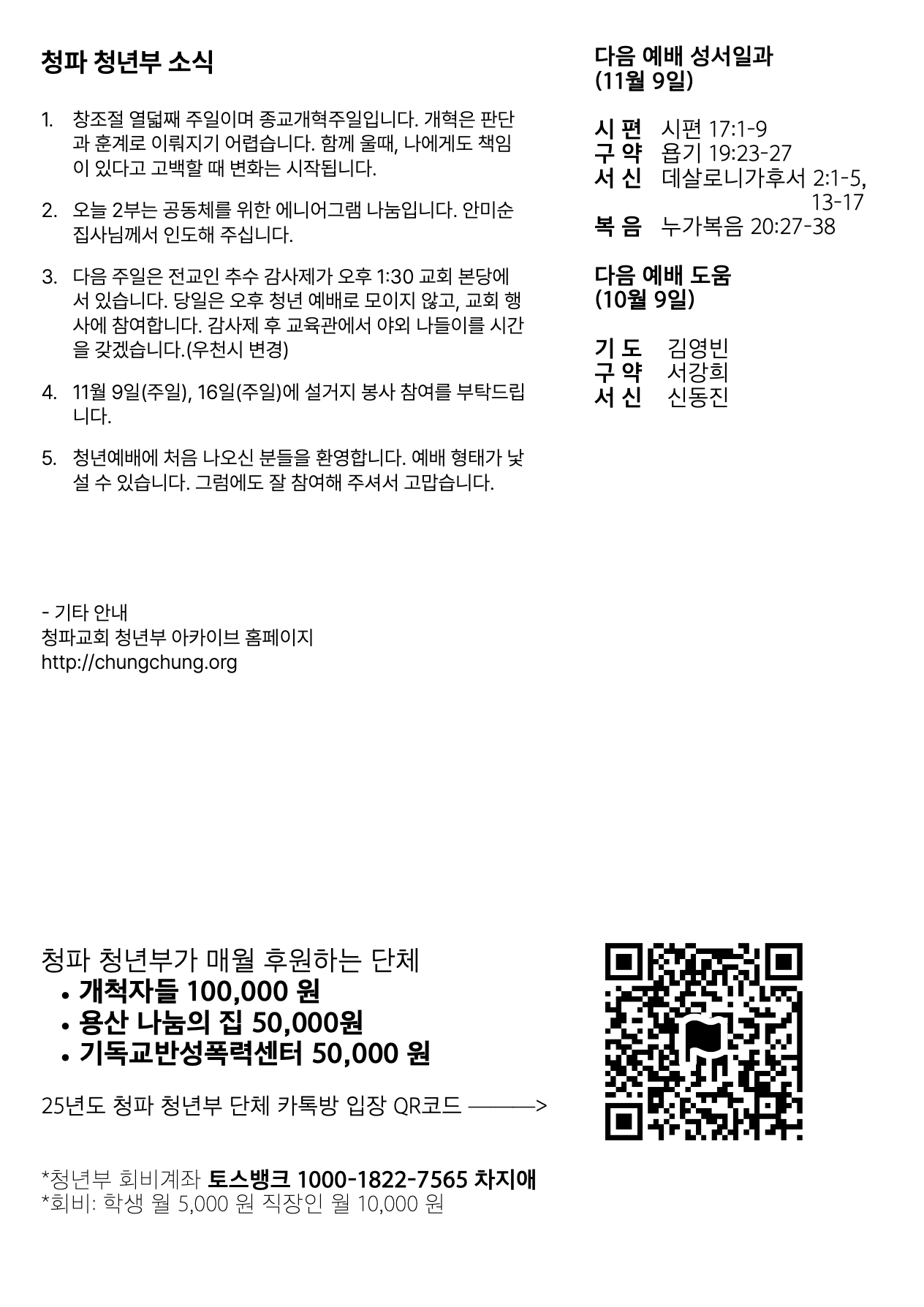 | 2025년 11월 9일, 창조절 열째 주일 (0) | 2025.11.08 |