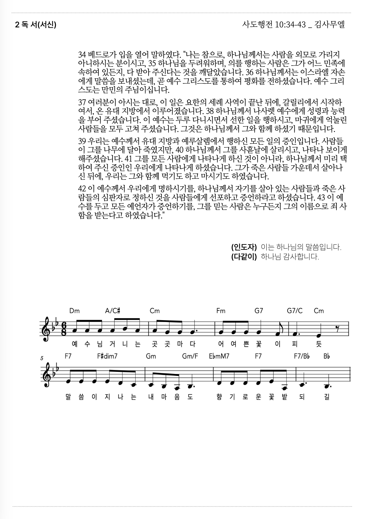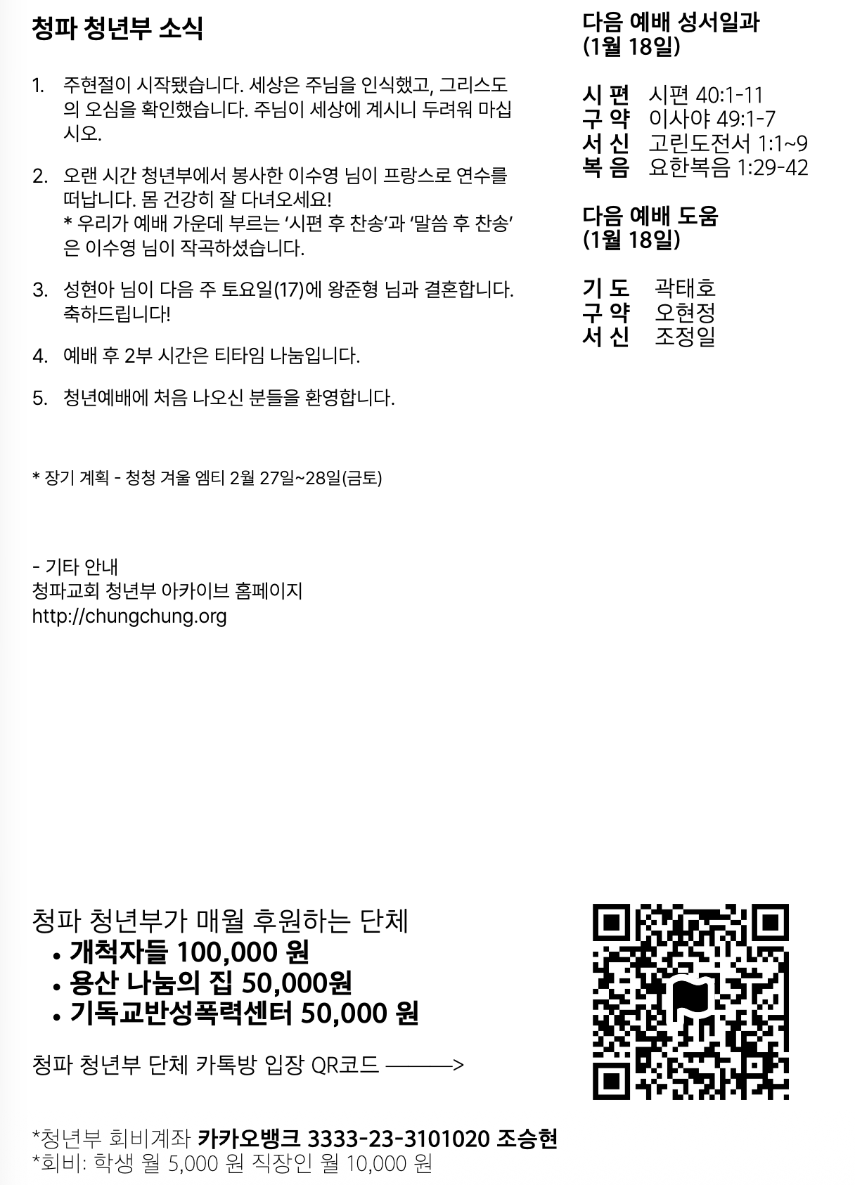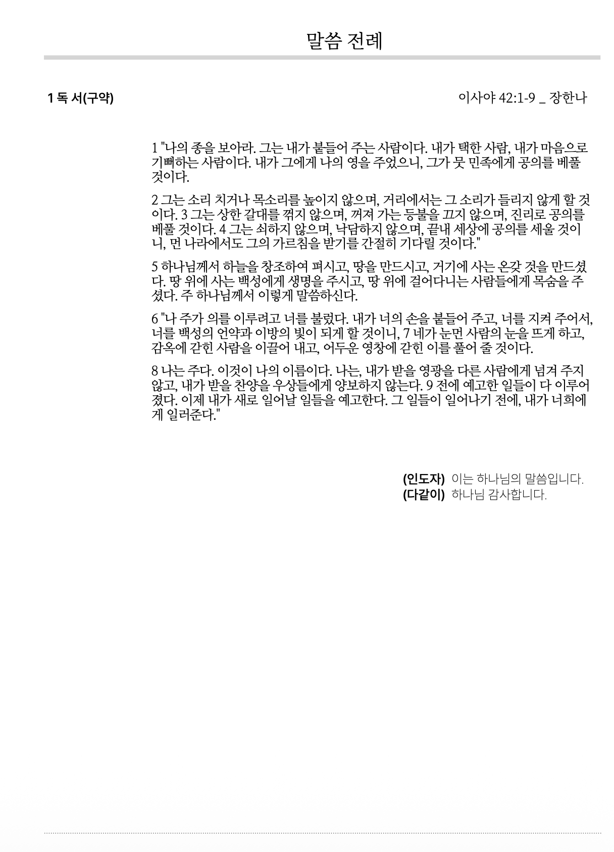 2026년 1월 11일, 주현 후 첫째 주일