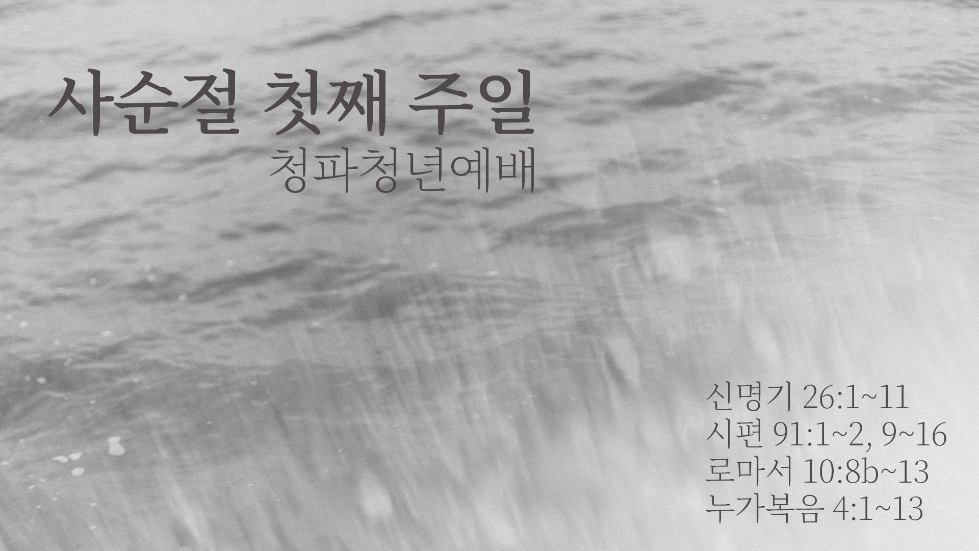 수난의 길에 들어선 주님을 따라 함께 걷고 같은 호흡을 하려 애쓰고 있는 청파의 청년 여러분들에게 주님의 은총과 평화가 함께하길 바랍니다. 교회력의 전반기는 지난 12월 주님 오심을 기억하는 대림절, 탄생을 기억하는 성탄절, 세상 가운데 자기 몸을 드러내신 주현절을 지나 고난의 길을 통해 죽음으로 가고 계신 사순절로 이어집니다. 지난 수요일 우리는 재의 수요일 예배를 드리며 사순절을 막 시작했습니다. 사순절은 주님의 수난과 죽으심을 기억하고 어느 절기보다 더욱 진실하게 경건과 성찰에 매진해야 하는 때입니다. 모쪼록 사순의 기간 동안 양심을 견고하게 다듬고 마음의 다정함을 잃지 않으시는 여러분들이 되시길 부탁드립니다.